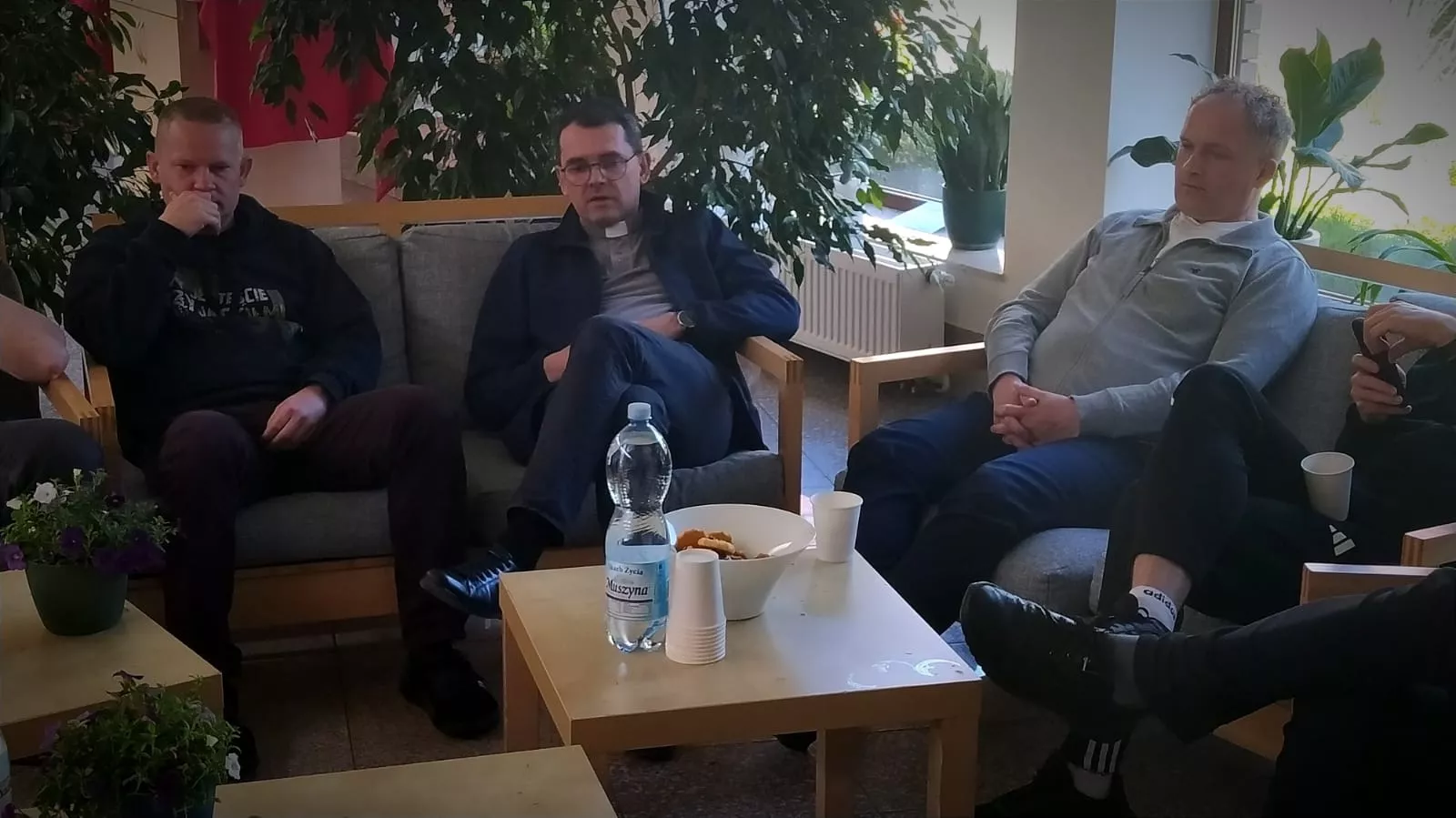 Podczas spotkania "przy kawie" kapłani na czele z Kierownikiem pielgrzymki podzielili się osobistymi przemyśleniami oraz sugestiami zarówno dotyczącymi przeżytych rekolekcji jak też praktycznych rozwiązań dotyczących zbliżającej się pielgrzymki.
