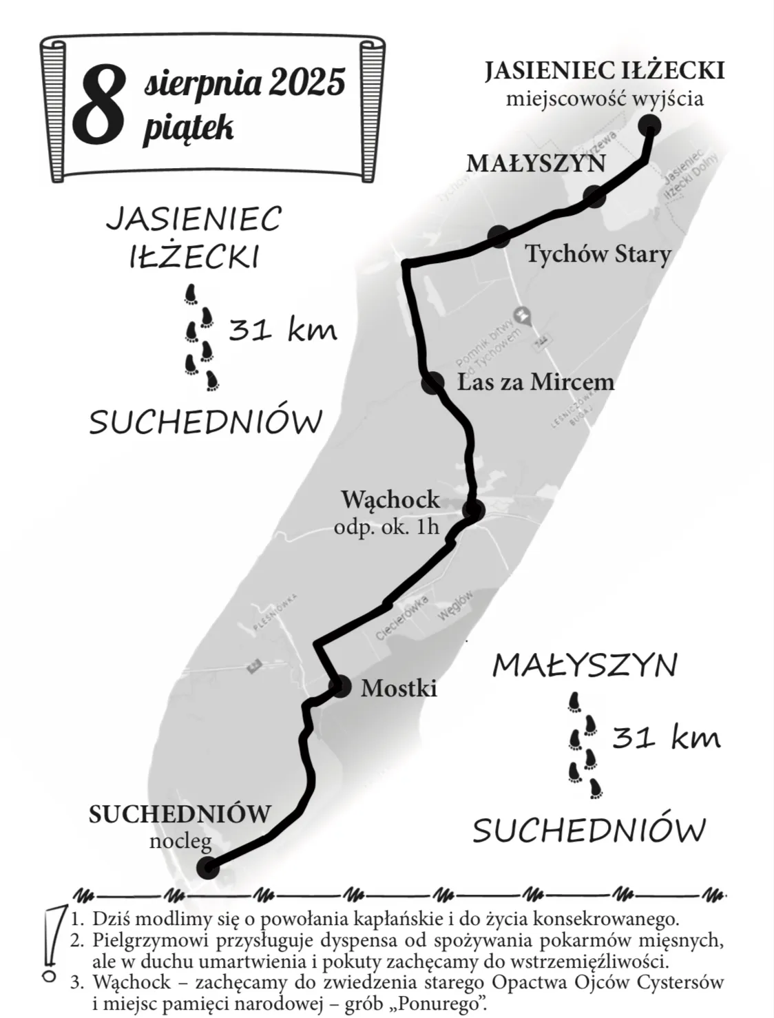 Pątnicy z kolumny bialskiej pokonują trasę o długości około 31 km z Małyszyna do Suchedniowa.