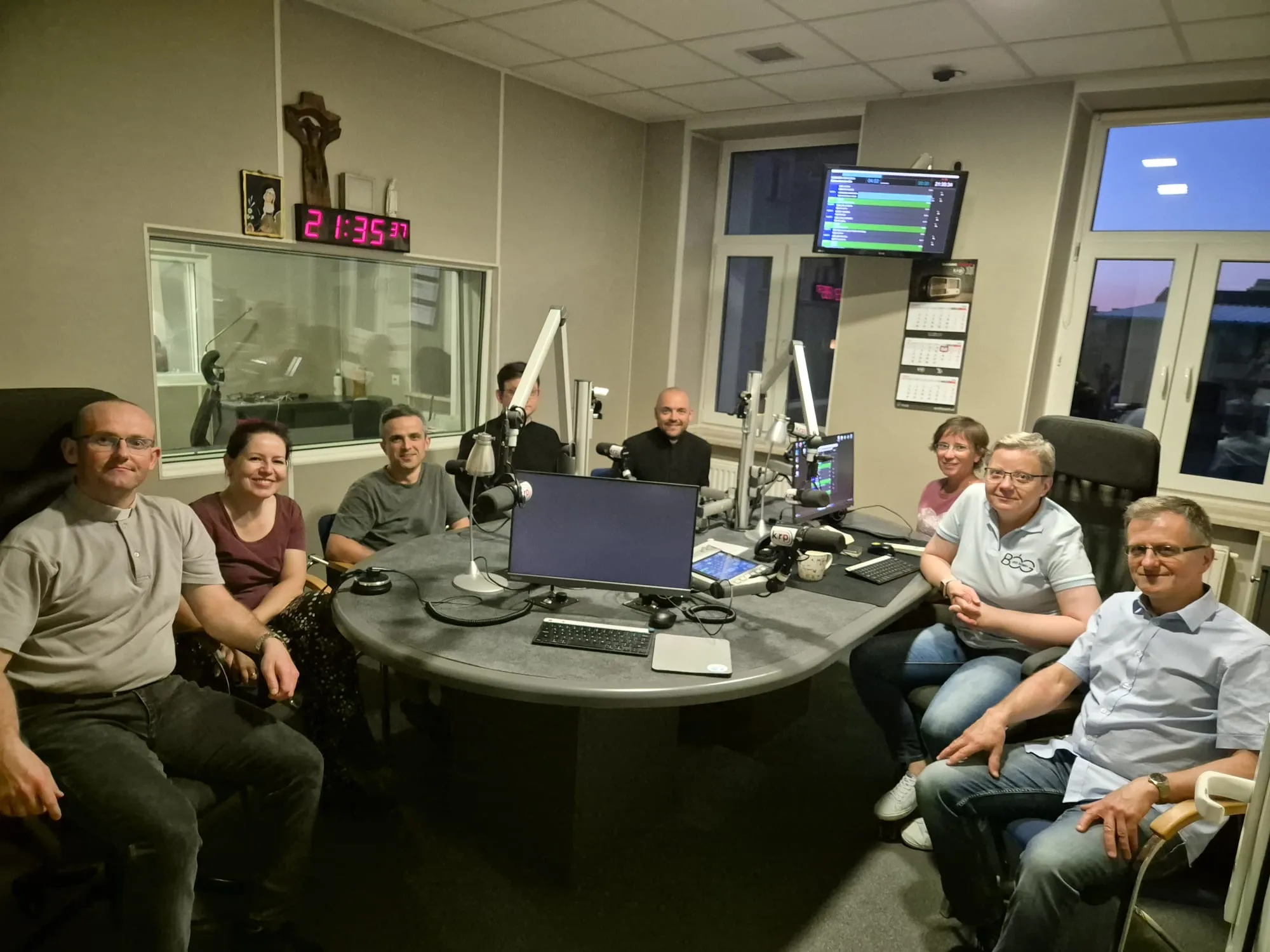 Audycję poprowadziła Pani Monika Sadowska. Uczetniczyli w niej: wicekierownik Pielgrzymki - ks. Marek Strzeżysz, przedstawiciele służby technicznej - Magda Rudko i Wojtek Bronisz; diakon Maciej Szcześniak - odpowiedzialny za służbę liturgiczną; ks. Damian Koryciński - porządek oraz przedstawiciele grupy nr 2 Agnieszka Kalata - posługująca w służbie porządkowej i muzycznej jak również brat Cezary Wielgórski - posługujący w służbie porządkowej. Telefonicznie połączył się Paweł Kot, który posługuje w służbie przemarszu.